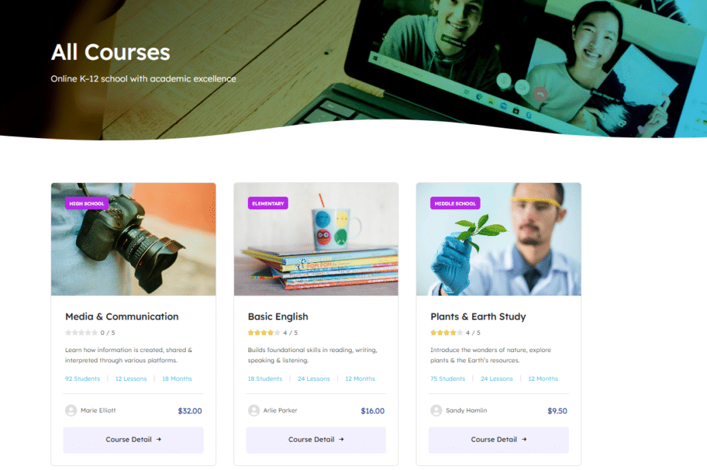 Mettez en valeur votre école avec un site web clair, moderne et intuitif. Ce template est conçu pour présenter vos programmes, vos enseignants, vos actualités et faciliter la prise de contact avec les parents et les futurs étudiants.